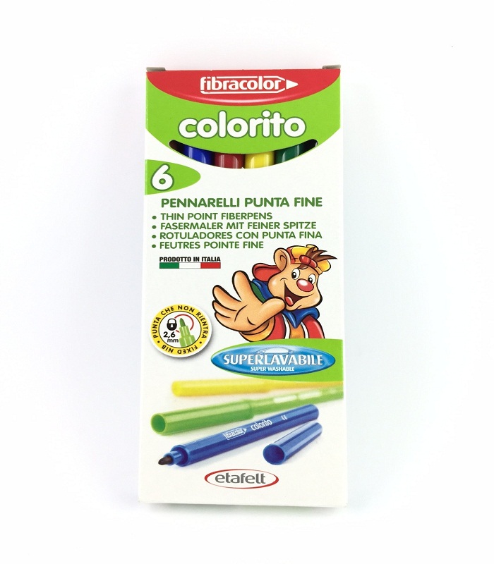 Fine Point Super washable Markers 6 Pcs Fibracolor
