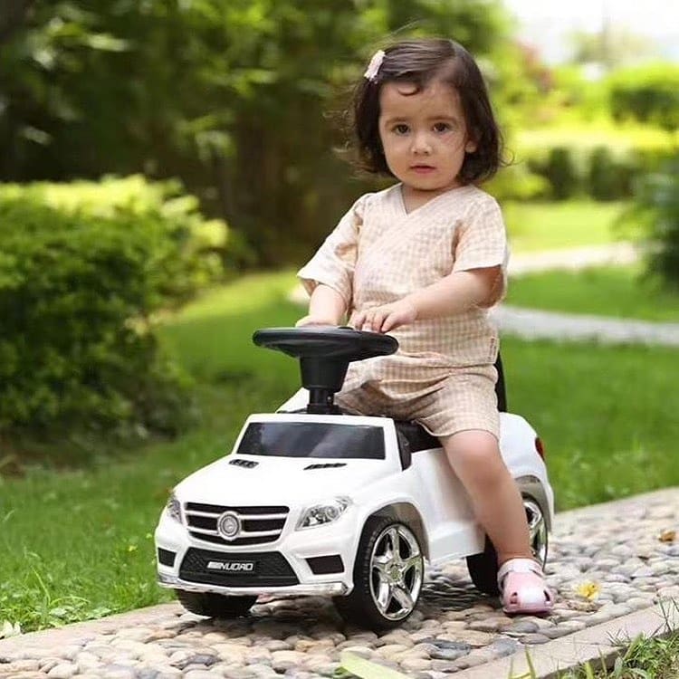 Makina benz me doreze ku femija ulet dhe meson te beje xhiro vete duke u mbeshtetur fort ne timon dhe duke i dhene drejtimin qe do Muzika ne pjesen e timonit ben qe femija mos te merzitet asnjehere Perfekte per moshen 1-4 vjec