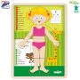 Woody 91925- Eco Wooden puzzle- Trupi i njeriut - Vajza- prej 12 formave që duhet të palosen në një kornizë-kornizë,